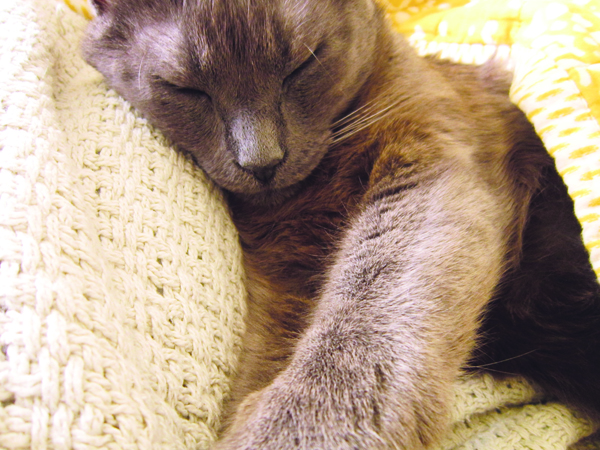 Ronnie James settled himself on Callaghan’s legs to catch up on Homeland with us.