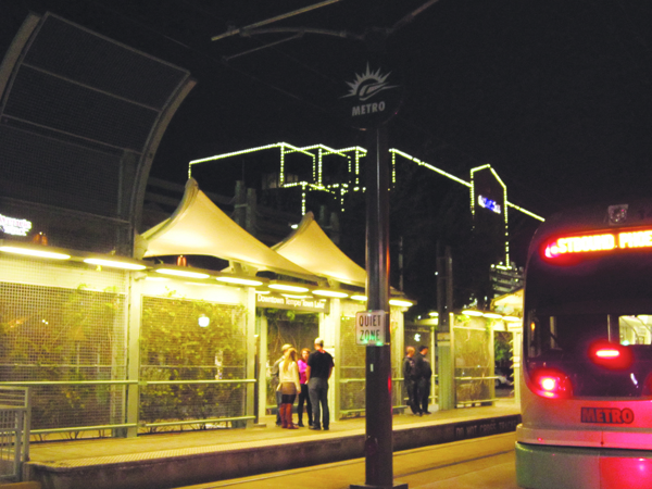 –Strolling home, we admired Mill Avenue’s holiday lights, which always stay up until after New Year’s: