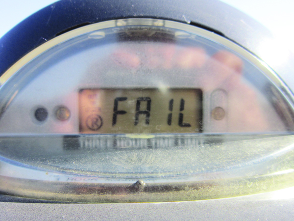 Curious, we re-traced our steps to see if other meters would have anything interesting to report. Most of them displayed the -0:00 reading like the first one, but sure enough, another meter down the line read: