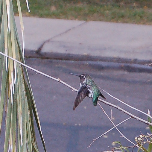 Nectar, our favorite little hummingbird! Callaghan took this photo from our living-room.