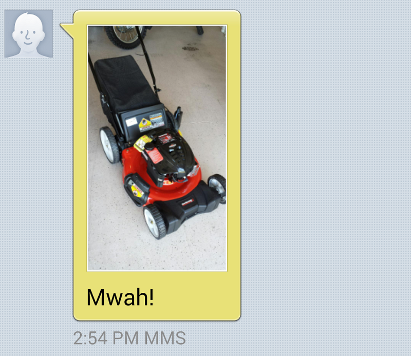 But Callaghan arrived at his educated decision to get a lawnmower that happened to be powered by Briggs and Stratton, and then he ordered it and eagerly tracked the progress of the lawnmower’s shipping progress. On Friday, he reported that the lawnmower had arrived.