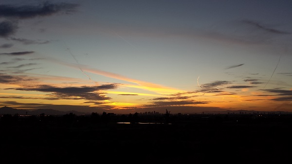My work day ended at five, as usual, and Callaghan gamely came to get me, as usual. We had to run some errands at Tempe Marketplace, so we went there and did that. Then we were almost home when I suddenly felt the need to feel the earth under my shoes… I mean, the actual earth, as opposed to pavement. I wanted to feel and hear the gritty crunch of desert as I walked. Callaghan is always up for my whims – spontaneity is a part of his DNA – so we swung a right on the Mill Avenue bridge and went over to Papago Park, because why not? It was right there, five minutes from home, and it was dusk, the ideal time for a little nature walk. It was around 6:30pm.