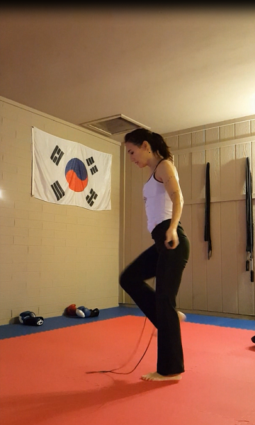 On that note, as I did with my Tae Kwan Do post a couple of weeks ago, I filmed parts of my last garage workout so I could clip some pics! My workout on Sunday morning consisted of the sort of general fitness workout I enjoy the most, which is conditioning geared toward martial arts. The strength-training aspect is significant in these kinds of workouts, though I just realized that the pics I chose don’t reflect that part as much. Go figure.