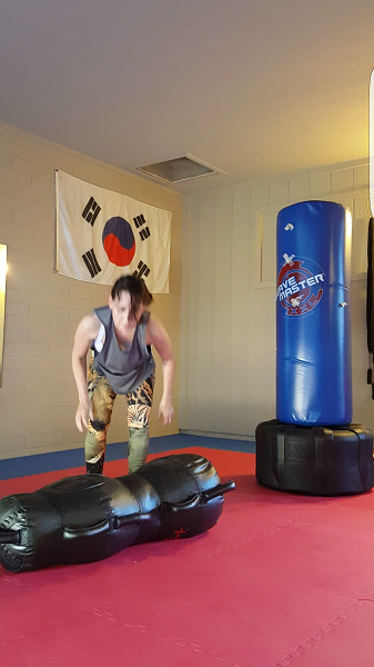 –Then I spent some time moving around the dummy, staying low while touching, grabbing, switching directions, et cetera. Just some basic grappling conditioning. This is great for lower body strength.