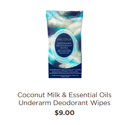 7). Pacifica Coconut Milk & Essential Oils Underarm Deodorant Wipes.