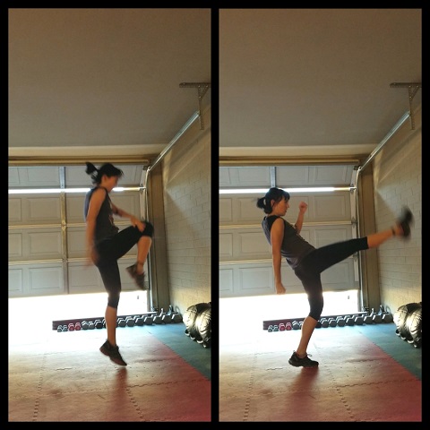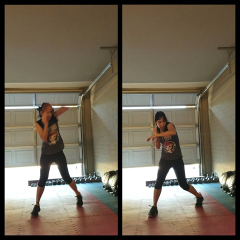 All that said, here’s an idea of what you do in Les Mills Body Combat (cardio kickboxing). I tried to capture screenshots showing a range of the sorts of techniques applied in this high-intensity cardio workout: