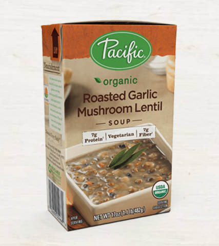 6). Pacific Organic Roasted Garlic Mushroom Lentil Soup.