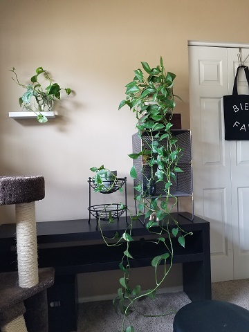 Barclay was my first plant in this house; I brought him home in 2014. He’s the one who started it all! Barclay has flourished, and he’s now delightfully out of control. He cascades, drapes, coils, entwines, and generally goes in any direction he pleases. He is lovely.