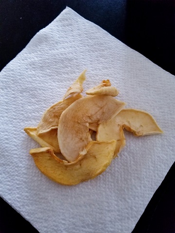 Dried apples: a new favorite snack that’s easy to eat while writing. No mess! They’re tart and light and lightly sweet, and the chew is satisfying and not clingy to the teeth.