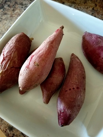 Here’s another new favorite snack: these tiny sweet potatoes. I steam a whole bag all at once and keep them in the refrigerator. They’re easy to grab and eat, and they’re also mess-free since they’re cooked in water with no oil. So good!