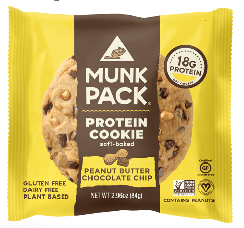 8). Munk Pack Peanut Butter Chocolate Chip Protein Cookie.