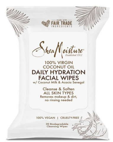 2). Shea Moisture 100% Virgin Coconut Oil Daily Hydration Facial Wipes.