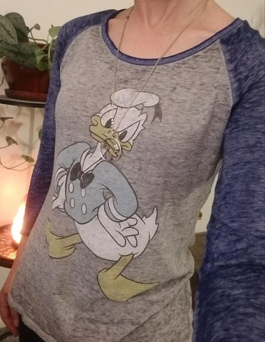 One interesting thing I discovered about myself during this last little slump (which I’m sure was triggered by not having worked out in a while due to wound-healing) is that I get super sensitive to color when I’m in that mental state. I realized this the morning I put on one of my favorite t-shirts and immediately took it off because I wasn’t feeling it, or, rather, the wrongness of the color for that moment felt like a physical aggravation. It was definitely the color. I felt that if I had a super soft, thin, plain black t-shirt for every day of the week, I’d always be comfortable. (I have just one.) The other shirt I have that always feels right is this equally soft, thin shirt that I’m wearing at the moment: