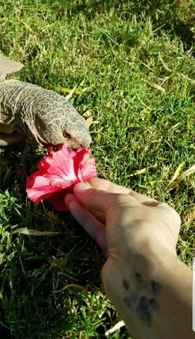 I fed him hibiscus flowers.