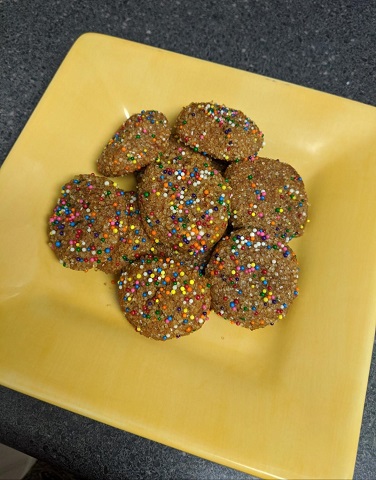 –Use a teaspoon to scoop the dough and form into small round balls; roll in sugar, cake decorations, candy sprinkles, etc.