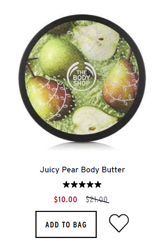 10). The Body Shop Juicy Pear seasonal scent (body butter). (Vegan and cruelty-free)