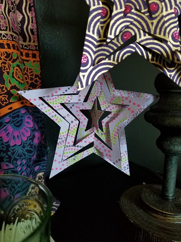 Adah Mandala throw pillow cover, heather light green tumblers, purple 3-piece origami star ornament set (from Just Artifacts)