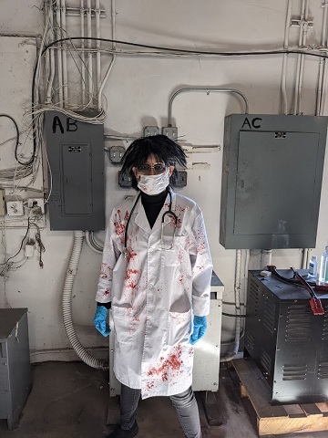 This year, I’ve really been feeling the ancient holiday of Samhain. My nods to it were simple, following the Celts’ cautionary practices of dressing up in scary costume, setting out a Jack-O-Lantern, and offering up treats. The Celts dressed up to be scary on Samhain in order to ward off the darkly mischievous spirits. With respect to this tradition, I dressed up to be scary on Friday and went in to work as a psycho surgeon: