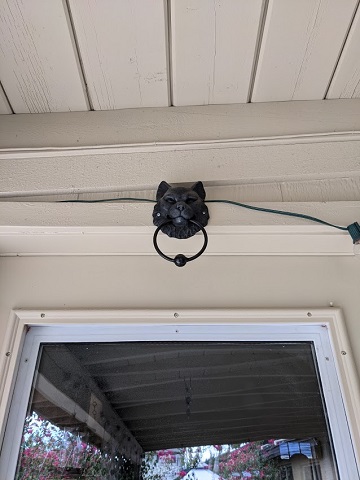 If that’s Salem’s doorstep, then that’s Salem’s door, and if it’s her door, then it’s her room. It’s my laundry room, more technically, but let’s be real here. When a cat lives in a place, it’s her place. It is not up for discussion. This is Salem’s room. She often hangs out on the doormat on her front porch next to her food area.