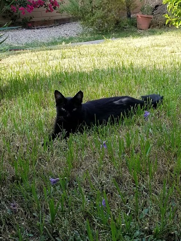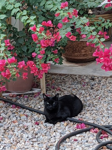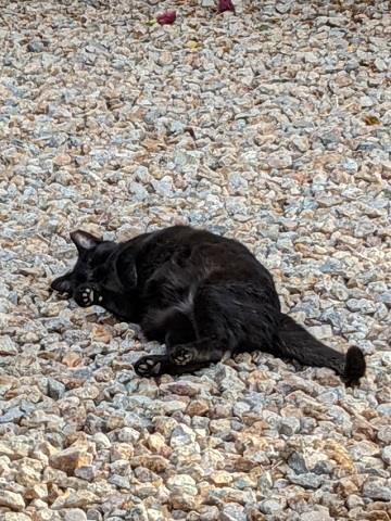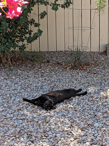 Salem used to disappear during the day and stay out half the night. Now, she’s home more than she’s away. She slips out for a little while, and next thing I know, she’s back in her yard, lounging here and sleeping there.