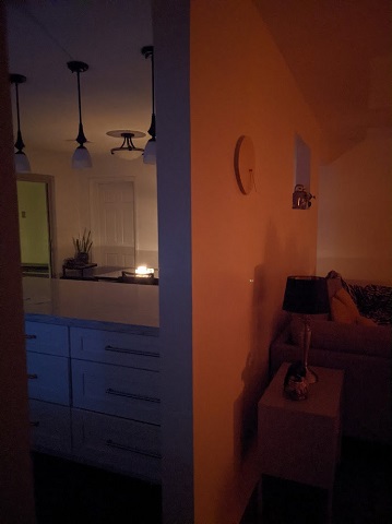 It’s dark and cold when I get up now, and quiet and still. It’s peaceful, and I’m grateful for that. I’m not a morning person, though. Neither am I a winter person or a cold-weather person. First thing I do in the morning is a thing that makes the day feel welcoming: I light the two front rooms with pink light and candlelight. There’s a pink salt lamp in the living room and a triple-wick candle on the dining table in the other room, and it’s nice because I can see into both rooms from the hallway, on either side of the partial wall that separates them. The glow from candlelight on one side and pink salt lamp light on the other makes the front rooms cozy, and I can ease into the day without feeling like I was jarred awake by an alert.