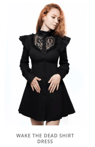 It’s called the “Wake The Dead Shirt Dress,” which is clearly a euphemism for “Evil Grandma” dress. I’ll grow into it, as it’ll look better on me the older I get. I can’t wait to be a spooky elderly lady wearing this dress. Haha! Until then, I’ll wear it as my go-to Christmas party dress, if we can ever have Christmas parties again.