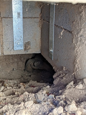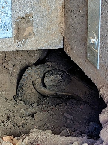 I knew that he wasn’t going to come out all the way today, and he didn’t. When the chill of dusk started to settle, I went back out to check on him and found that he’d retreated into his cozy winter digs.