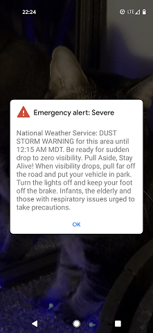 We didn’t get any rain with the dust storm last night, at least not where I am, but some fleeting monsoon action kicked up a little while ago tonight: thunder, lightning, strong blowing dust, and rain. It lasted for, I don’t know, 15 minutes? 20? That’s been it so far, but there’s still time for the monsoon to return. I hope it does. Monsoons bring the drama, and it’s the good kind.