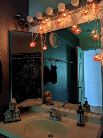 So here we are at Halloween decor tour 2021, hallway bathroom edition!