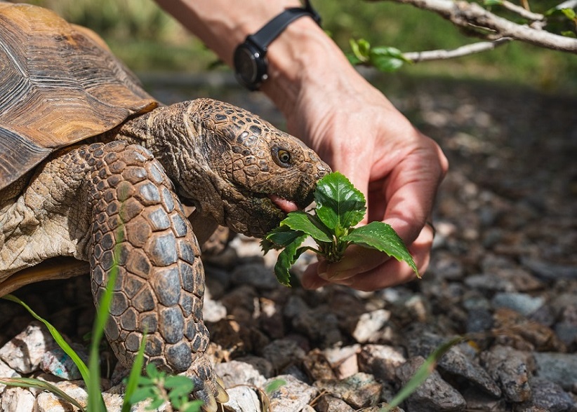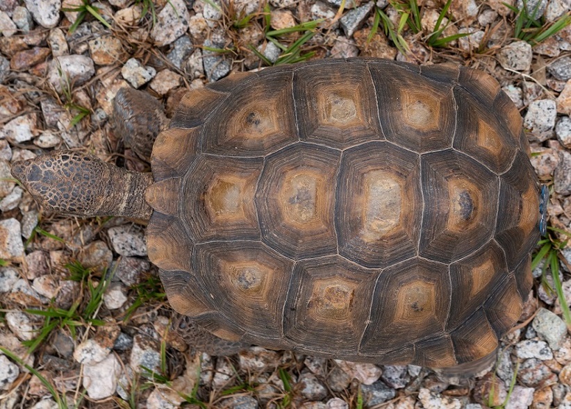 “I saw ur tortoise from 11:00-2:00. He was all over the yard foraging. It was hot that day… fast little guy”