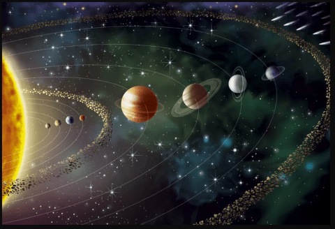 I’ll share this with you, too: Two of my favorite ways to meditate are clearing my mind while gazing into fire, and clearing my mind while gazing at this picture. It’s mesmerizing to me, artistic renderings of the planets lined up in order, for comparison… Mercury, Venus, Earth, and Mars, and then the Giant Planets on the other side of the asteroid belt: Jupiter, Saturn, Uranus, and Neptune.