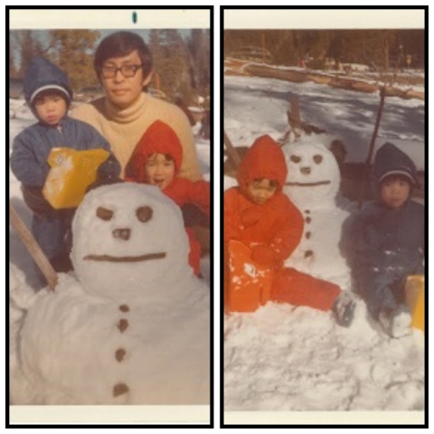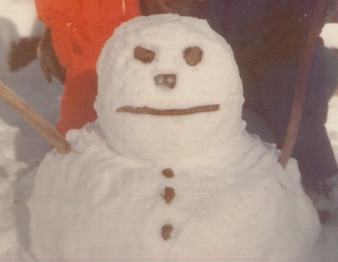 Going through a pile of childhood photos to scan, I came across a few of my brother and I sitting in the snow in Long Barn and I noticed that the snowman we made was either surrendering to authorities or absolutely giving up on life with contempt for all who’ve fallen for the lies, in either case beyond fed up, and I can’t remember whether we knew it and didn’t care, or knew it and continued on in total denial. I was afraid for us in retrospect because we knew from certain fairy tales that things children create can sometimes come to life, and in this case our creation coming to life would mean inevitable doom for us all. The snowman we made was very angry.