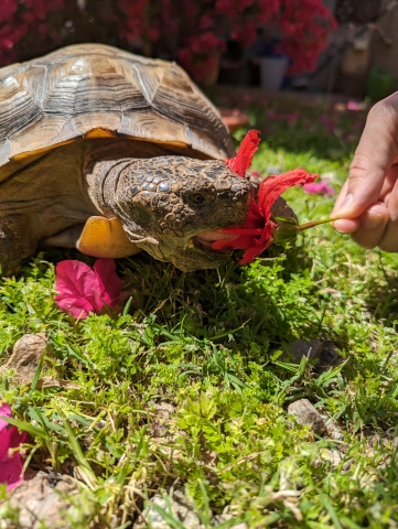 Hibiscus flowers: candy for Sonoran desert tortoises.