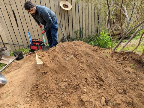 We needed a minimum of eight inches of dirt on top and around the whole burrow, so…