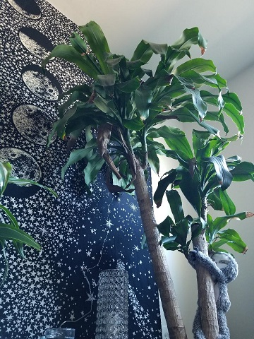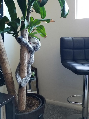 This tree would be good old Flamingo, who used to provide a hanging place for my plush sloth. (“plush sloth” – say that three times fast!) He’s now on my bed.