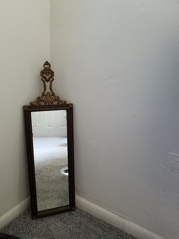My little antique mirror leans against the wall to the right. I maintain that the mirror is haunted, but not in a bad way, obviously.