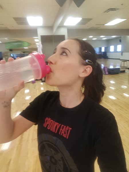 P.S. Here’s a pic of me drinking water before class at the gym last night, just demonstrating how I’m drinking water without thinking about it: