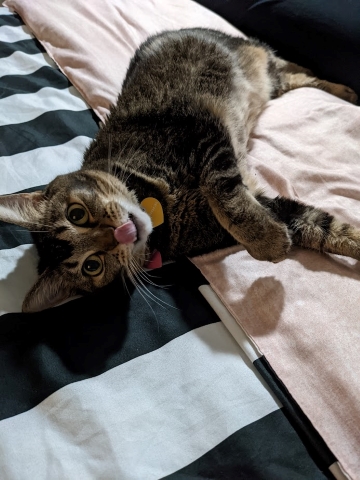 Friends, I have a post to share, but I need to sit on it for a week. Meanwhile, enjoy this pic of my cat Sabrina who sometimes answers to “Sabrina Ballerina” for good reason: