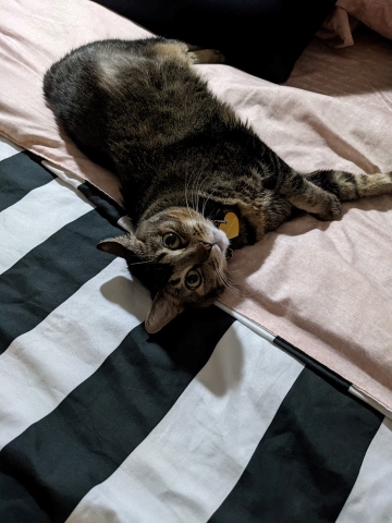 It’s been too long since I’ve come at you with cat pics, I’ve realized, so tonight I’m here to remedy the situation. Another thing, my friends, is that my last few cat posts have been dedicated Salem posts. While Salem lived her beloved feral kitty experience outdoors, Nenette’s lived her own truth here in the house. Which is to say that she occupies her space in the loudest quiet way possible, her every soft step deafening in its decisiveness. Even if changing her direction mid-course. Even if startled by the drop of a gum wrapper. Nenette invented the “I meant to do that” save.