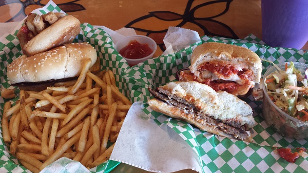 Saturday mid-day: We went to Green New American Vegetarian, another old favorite. For the first time in many months, I sunk my teeth into their miraculous Calexico burger, and my all-time favorite menu item there, as well, the No-Harm Chicken Parm Po-Boy sandwich. We ordered both so we could split them. For dessert, I had a Cookies ‘n’ Cream tSoynami. Think Dairy Queen Blizzard, but without dairy. You would never know unless you we told, either! Green is a place beloved by omnivores and vegans alike.