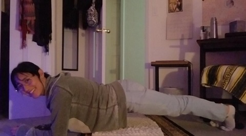 –I can pull myself up in bed and swing my legs around using just my abdominal muscles. With my core strength, I can easily get up from a seated or lying down position without using my hands or other assistance. (Important because I can’t use my hands; they don’t flex backward, my wrists are weak, and the pain is a problem.)