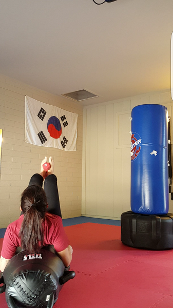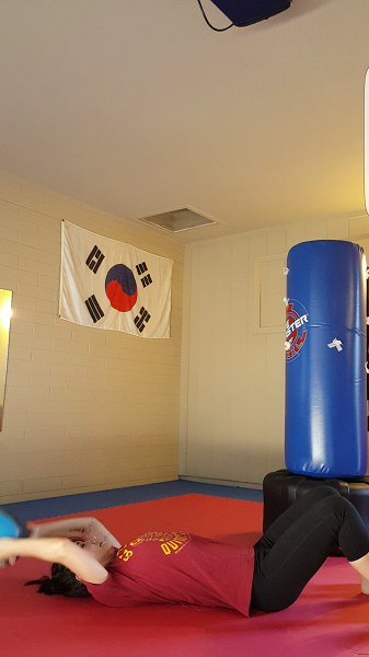 • Now I’m really not working my back, because I wasn’t focusing on the weird new moves in this weird new routine. Pay attention.