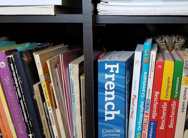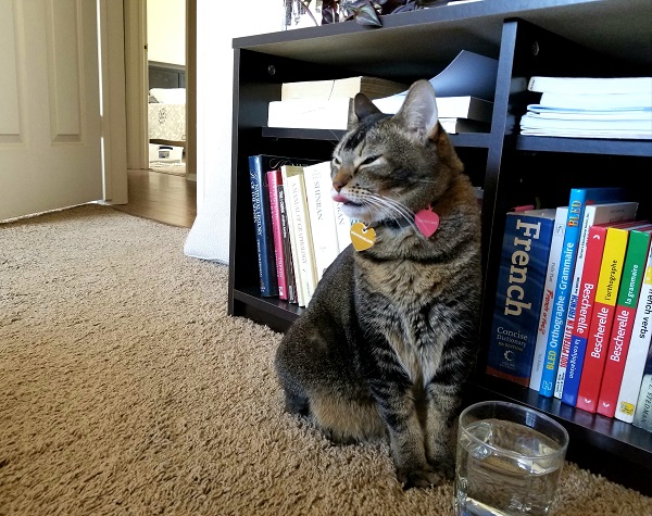 She still goes out and gets beat up now and again, talking trash to other cats in the hood. She cannot tolerate other cats (unlike Nounours, who simply resented competition). Twice, we had prospective families for her, and both times, they fell through. But looking at the situation with clear eyes, we can see that she’s simply happy here, on her property, with us. We do what we can to minimize her chances of getting hurt.